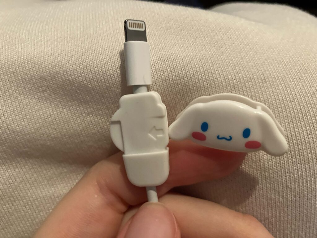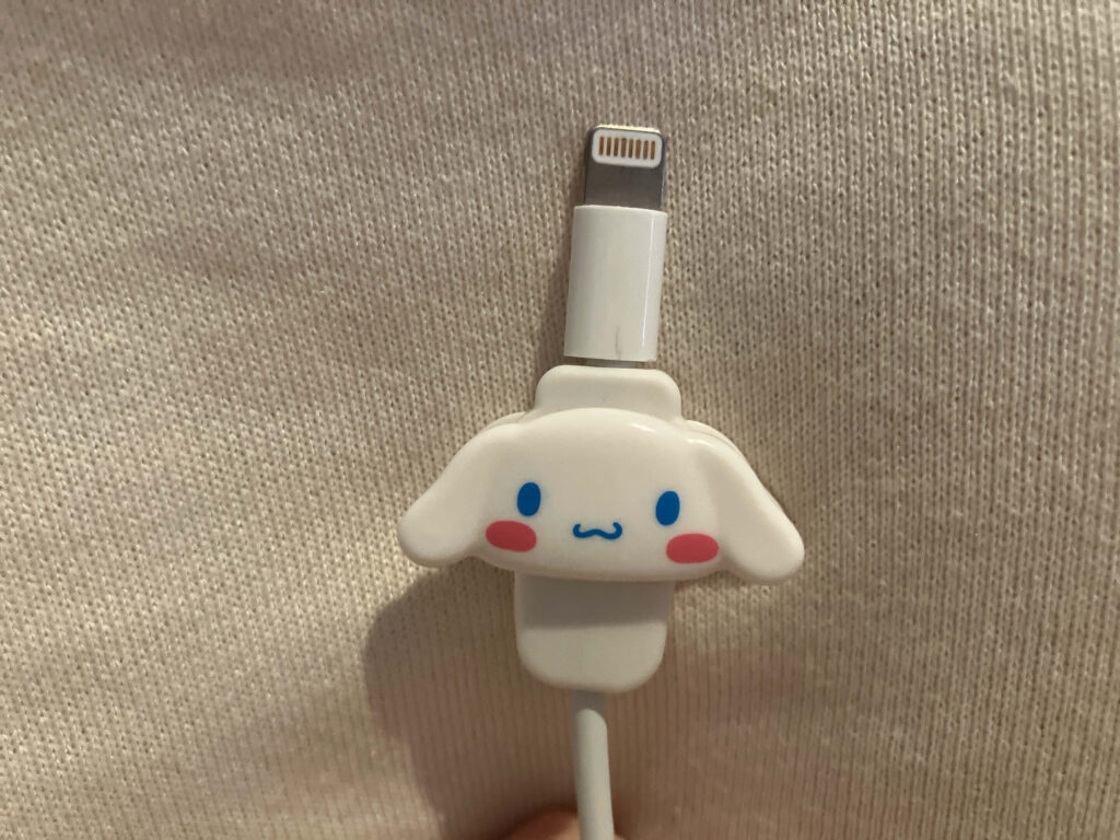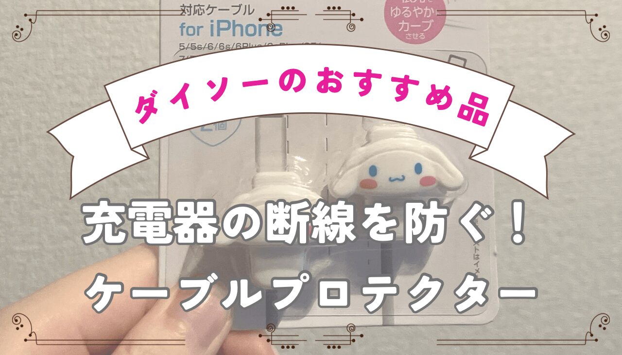 この記事では、DAISO(ダイソー)・CanDo(キャンドゥ)で販売しているシナモロールのケーブルプロテクター(ケーブルカバー)についてご紹介しています。